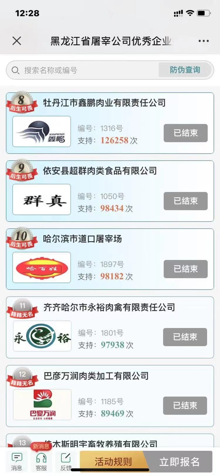 牡丹江市鑫鵬肉業(yè)有限責(zé)任公司參加黑龍江省屠宰行業(yè)誠信企業(yè)評(píng)選名列第八!