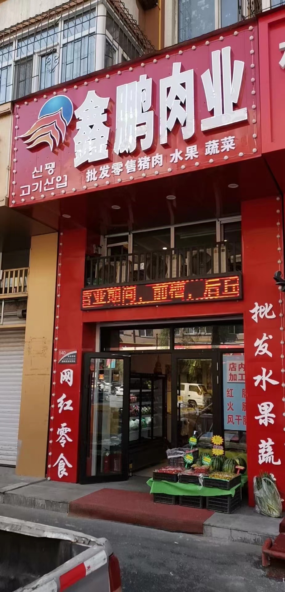 5月20日,鑫鵬肉業(yè)果蔬店開業(yè)