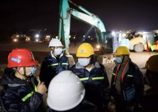 5小時后,35臺反鏟、10臺推土機(jī)、8臺壓路機(jī)從全市趕來通宵場平回填。
